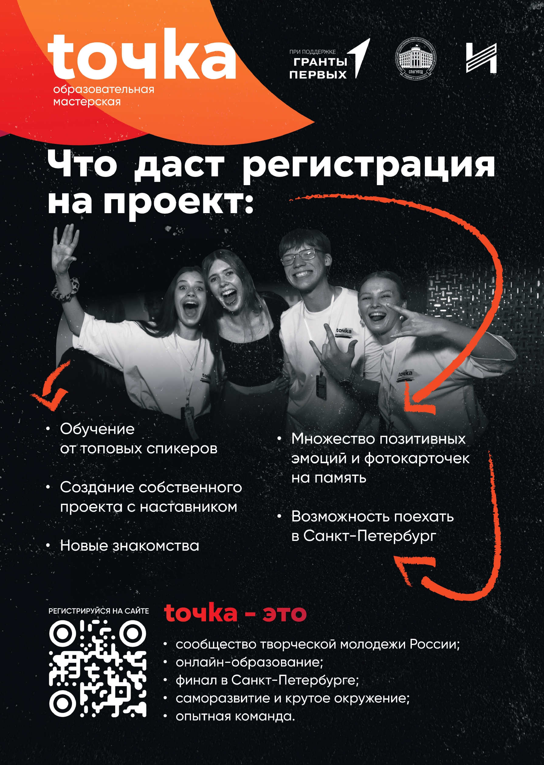 - tочkа.дети: учащиеся школ, колледжей и техникумов (до 18 лет), домов творчества всех регионов России, в возрасте от 12 до 18 лет и молодые педагоги дополнительного образования, педагоги-организаторы, классные руководители не старше 35 лет.