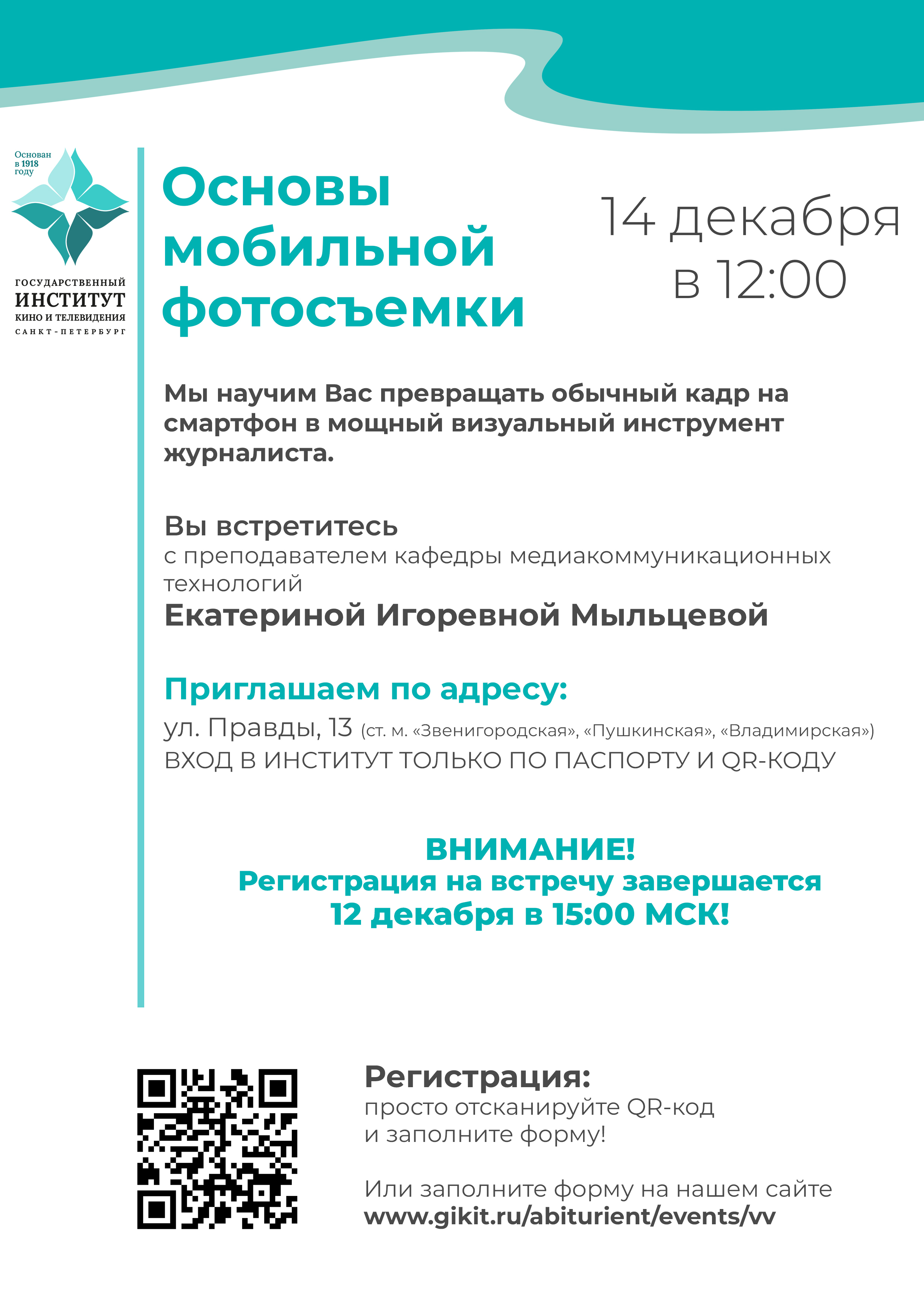 Воскресная встреча для абитуриентов - «Основы мобильной фотосъемки»