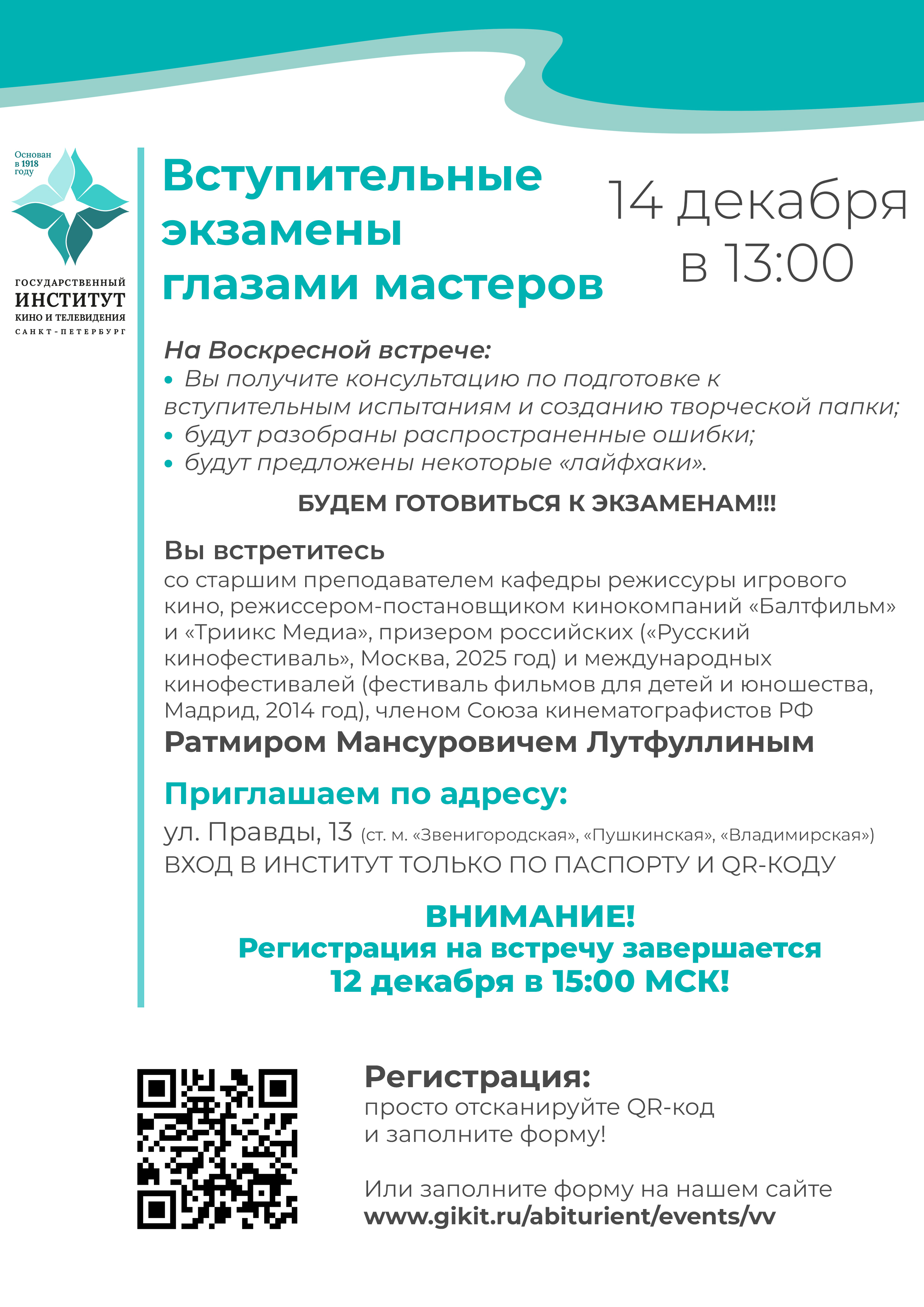 Воскресная встреча для абитуриентов - «Вступительные экзамены глазами мастеров»