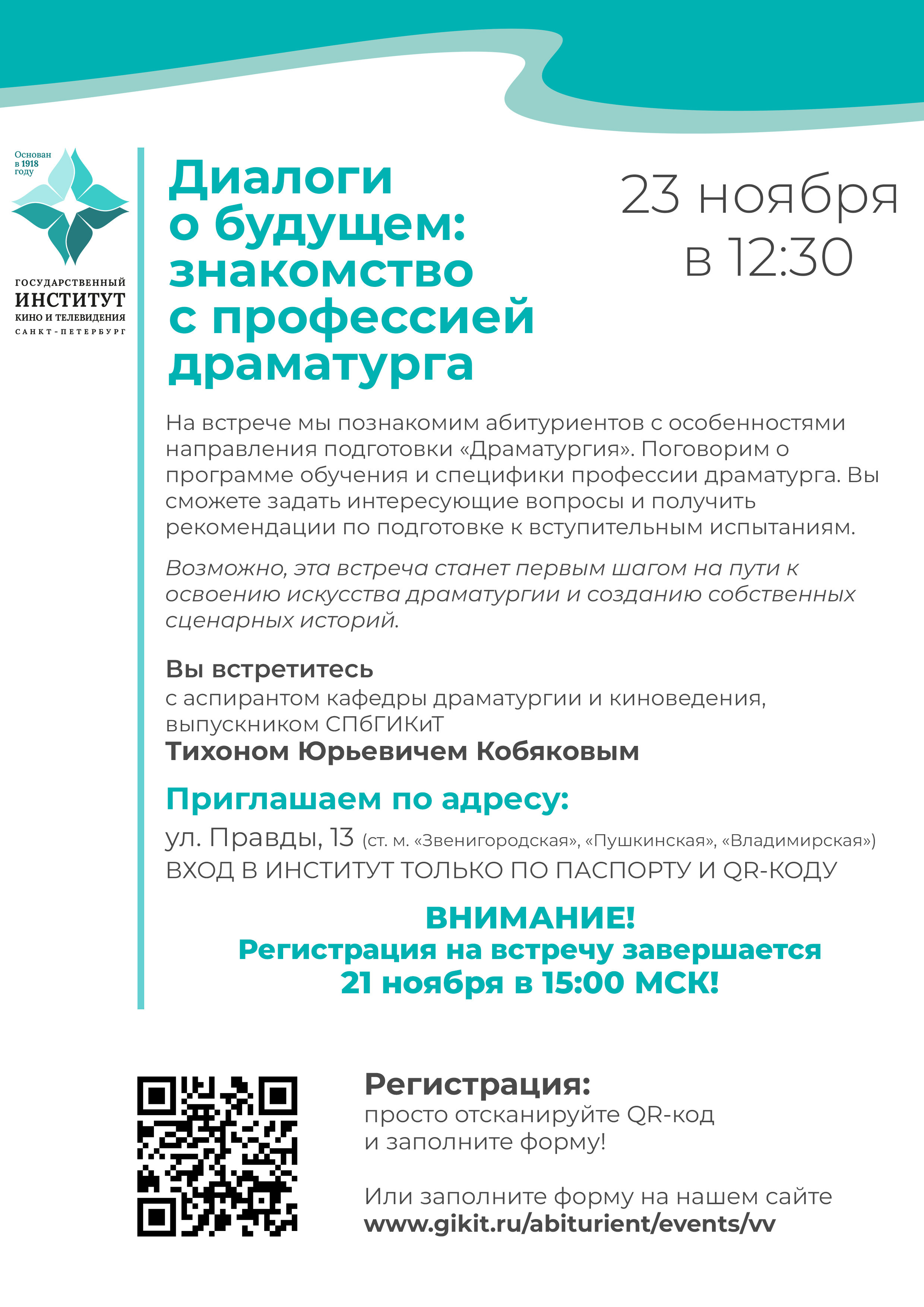 Воскресная встреча для абитуриентов - «Диалоги о будущем: знакомство с профессией драматурга»