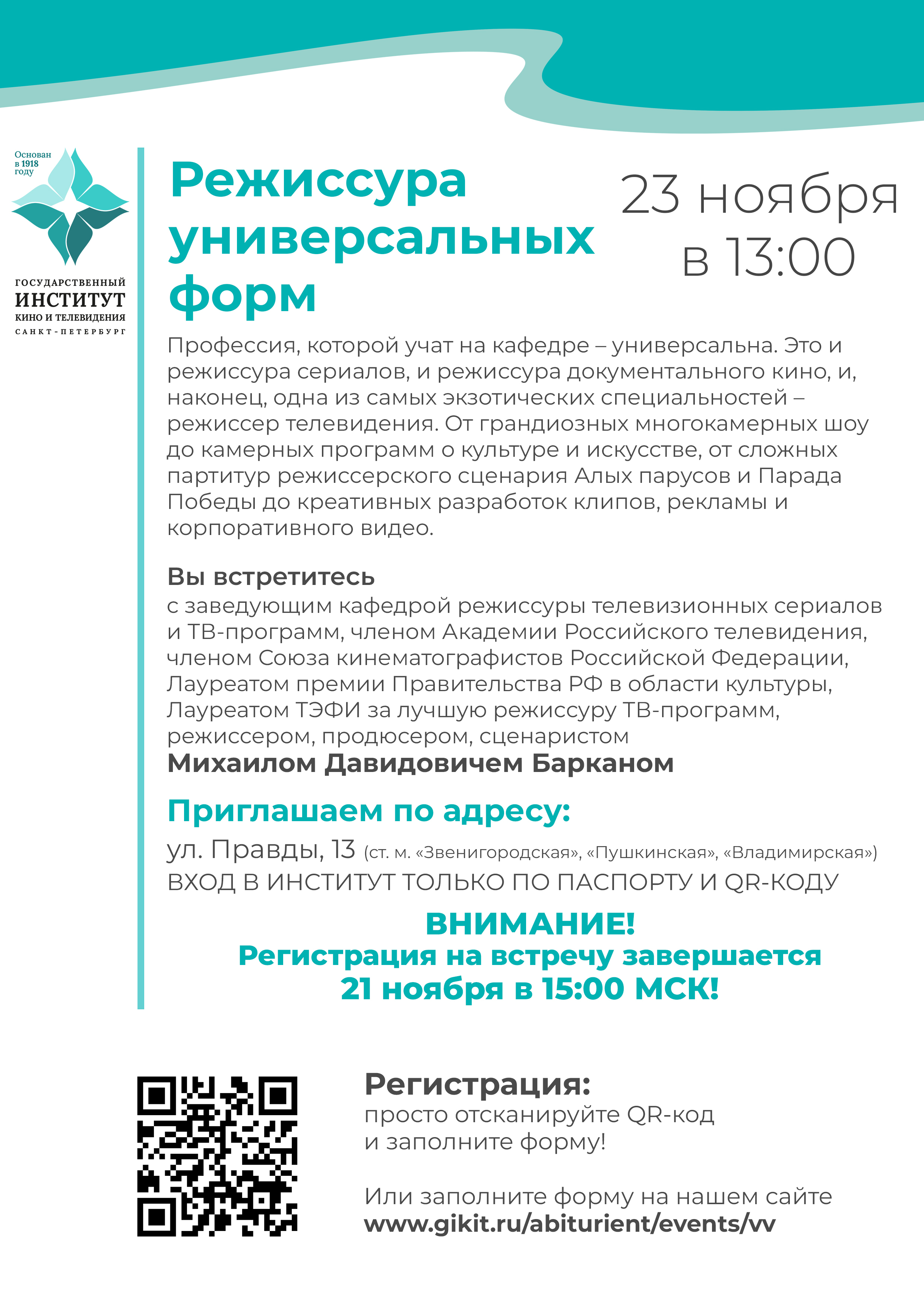 Воскресная встреча для абитуриентов - «Режиссура универсальных форм»