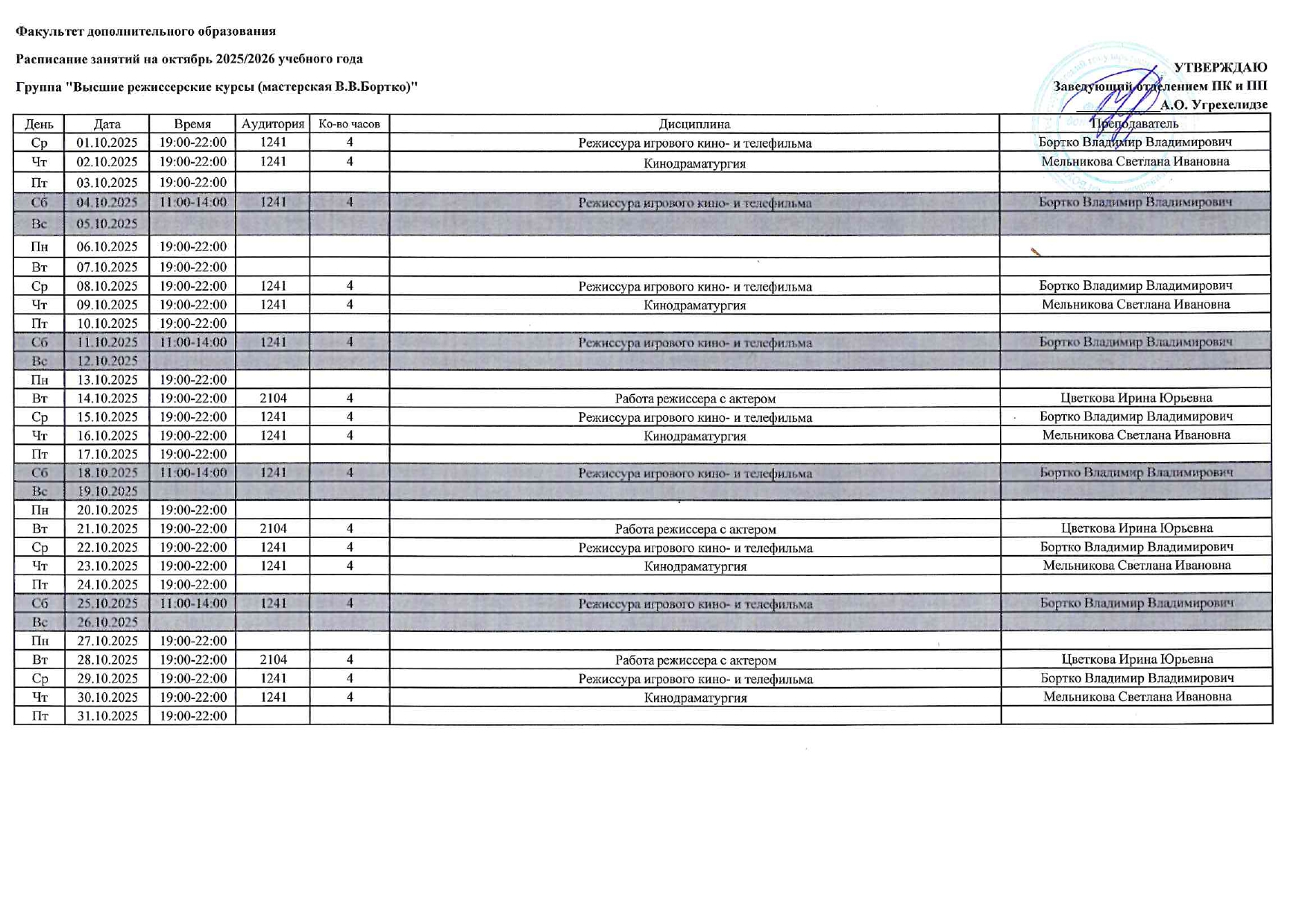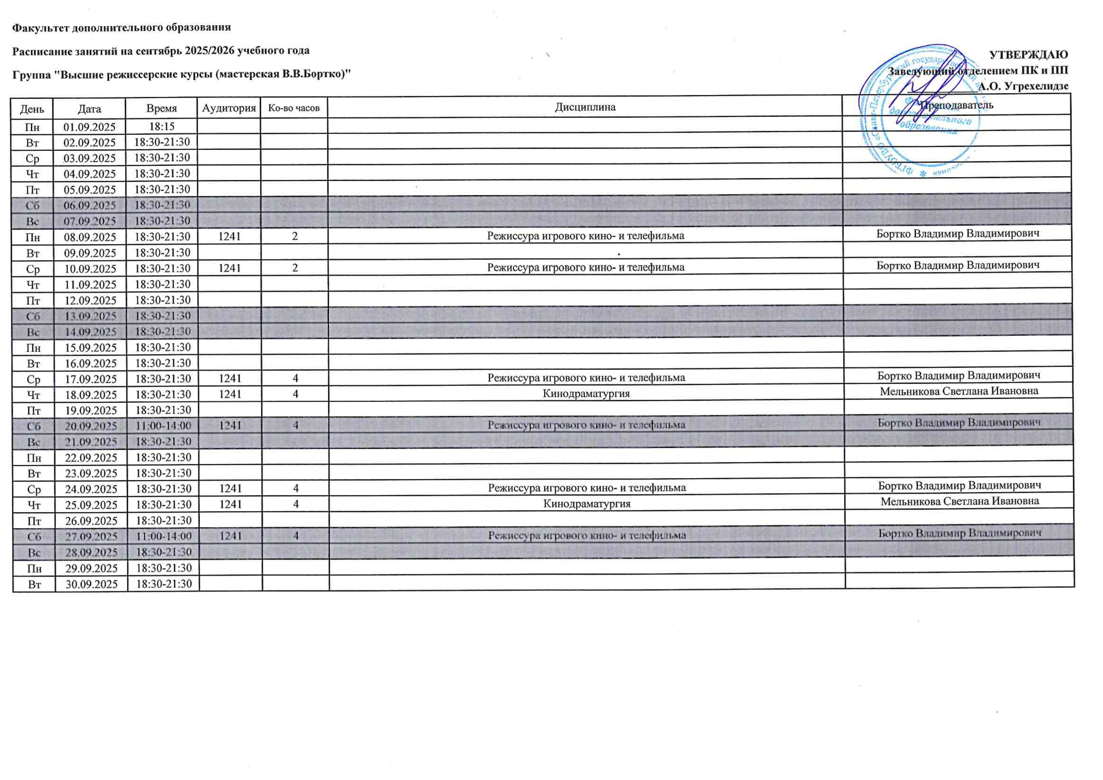 Высшие режиссерские курсы, мастерская В.В. Бортко