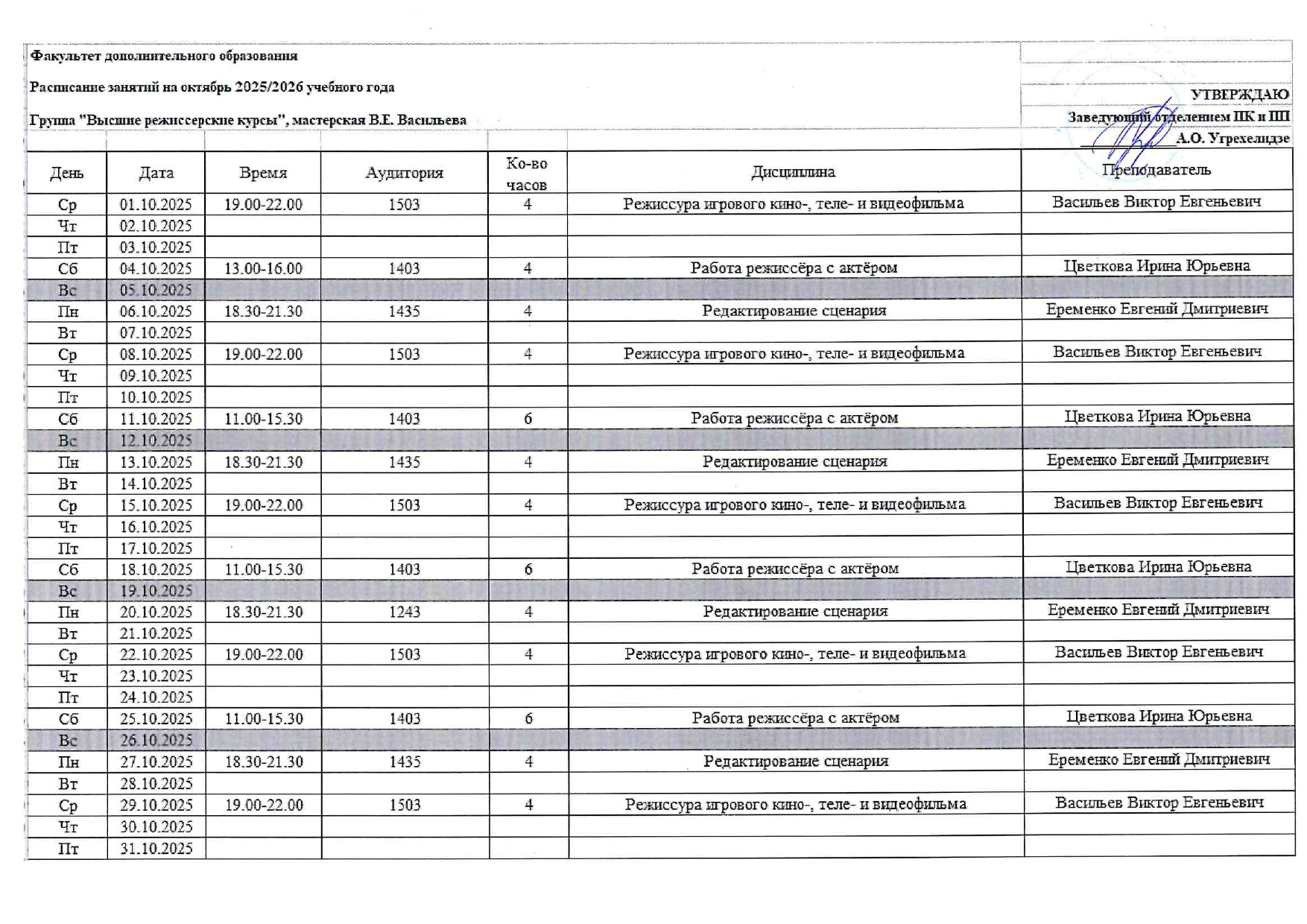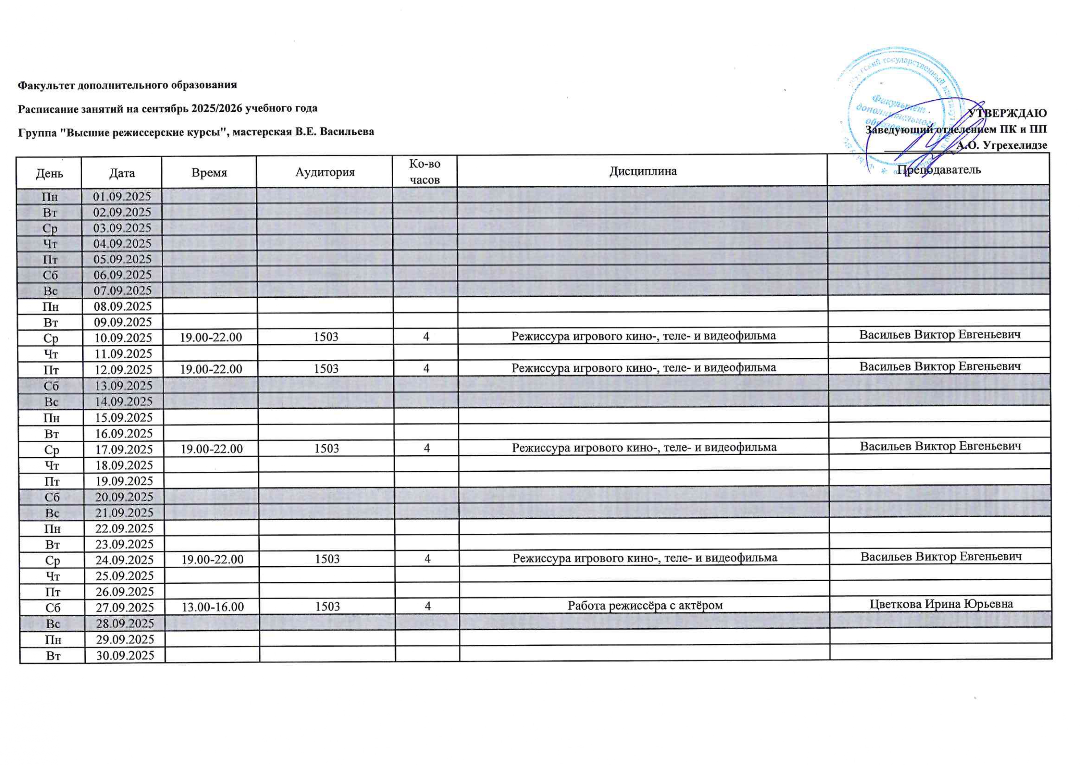 Высшие режиссерские курсы, мастерская В.Е. Васильева