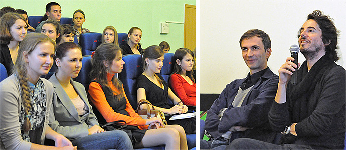 Реми Безансон и Тома Сальвадор рассказали студентам об особенностях кинопроизводства во Франции и о своем творческом становлении. Французские гости, по их признанию, являются большими поклонниками российского кино. Им близки фильмы режиссеров А. Тарковского и А. Германа, творчество которых повлияло на них, как представителей авторского кино. Кстати, один из фильмов Реми Безансона «Первый день оставшейся жизни», повествующий о жизненных перипетиях обычной семьи, был показан в этот день в Университете. Картина произвела огромное впечатление на зрителей, среди которых были как студенты, так и преподаватели. При встрече они выразили восхищение автору картины.