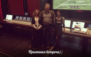 На фото запечатлен рабочий момент картины с Полиной Волынкиной (слева), главным звукорежиссером Киностудии Горького Владимиром Прямовым, преподавателем кафедры звукорежиссуры Мариной Шейнман.