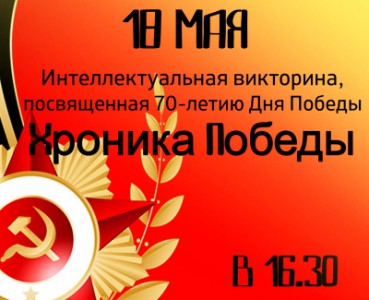 18 мая на факультете технологий кино и телевидения состоялась традиционная викторина, посвященная 70-летию Победы в Великой Отечественной войне «Хроника Победы». В викторине приняли участие шесть команд студентов 1 и 2 курса ФТКиТ, а также команда гостей – студенты 3 курса факультета медиакоммуникаций и туризма.