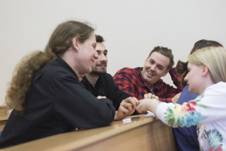Работу команд оценивало жюри: декан факультета Тамара Валентиновна Алексеева, старший преподаватель кафедры киновидеоаппаратуры Елена Юрьевна Патрикеева, инженер кафедры киновидеоаппаратуры Денис Евгеньевич Матикайнен.