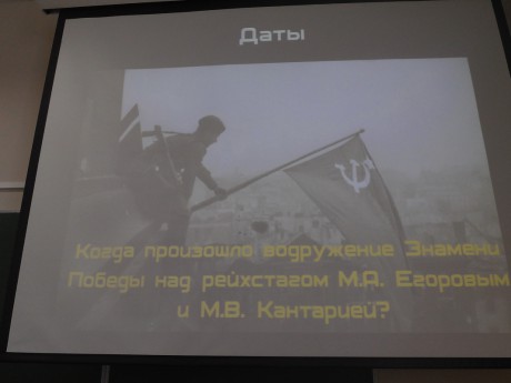 Командам было предложено не только блеснуть знаниями исторических фактов, но также вспомнить героев, военные песни и фильмы о войне.