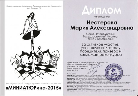 В этом году на конкурс «Миниатюрина» была прислана 1931 работа из России, Украины, Казахстана. Наша страна была представлена участниками из 8 республик и 22 областей. Несмотря на столь высокую конкуренцию, лучшими оказались студентки факультета фотографии, дизайна и журналистики Виктория Епанян (диплом 1 степени) и Алла Коршунова (диплом 2 степени).
