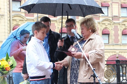 Одним из самых волнующих моментов митинга-концерта стало вручение паспортов Российской Федерации юным жителям Санкт-Петербурга. Так, под аплодисменты собравшихся, с напутственной речью главы Центрального района, началась «взрослая» гражданская жизнь представителей нового поколения патриотов своего Отечества.