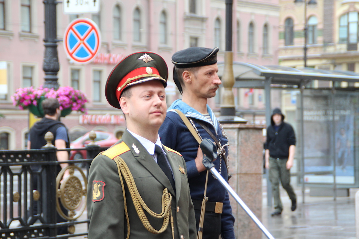 В числе фотографов, фиксирующих происходящее, были и студентки Санкт-Петербургского института кино и телевидения Антонина Скорик и Александра Сурова. Ни раннее время, ни плохая погода не помешали им приехать в этот праздничный день в центр города.