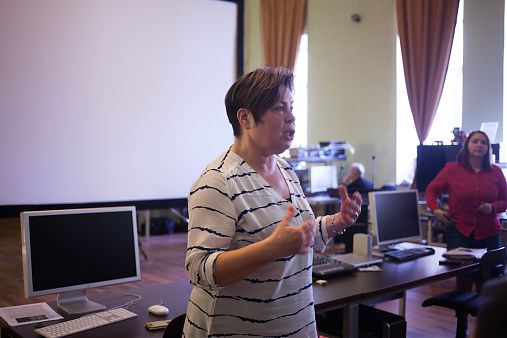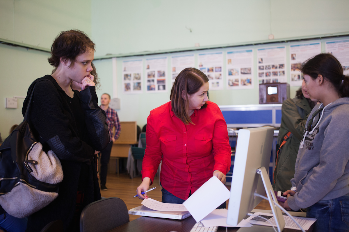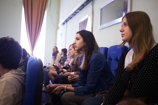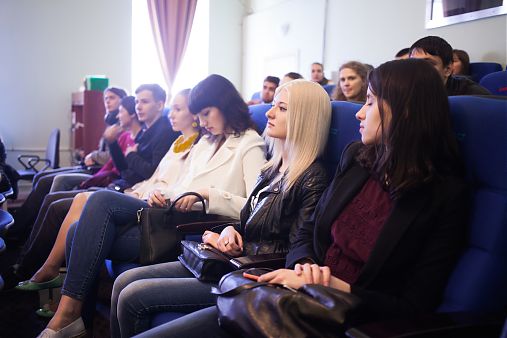 Декан факультета экранных искусств Светлана Ивановна Мельникова прояснила ситуацию и представила сотрудников института, которым вместе с ней предстояло беседовать с ребятами.