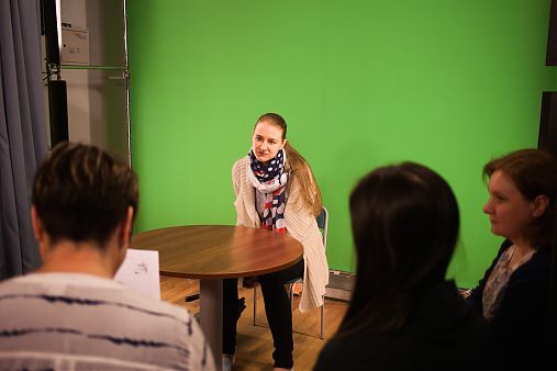 – Я только что прошла собеседование на участие в проекте «Мата Хари» на вакансию механика камеры/playback. Единственная сложность в собеседовании была для меня в языке, – призналась студентка 2 курса факультета экранных искусств Татьяна Борцова. – Общения с носителями английского было не так много. Остальные вопросы оказались по силам. Впечатления от собеседования самые положительные.