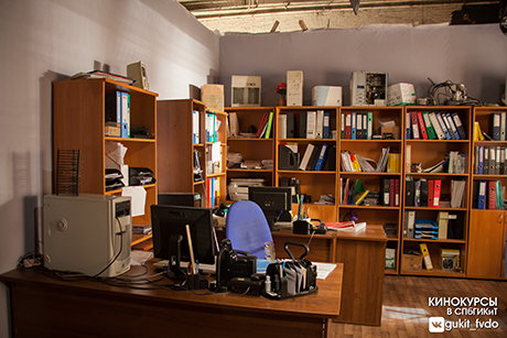 Слушатели провели нам экскурсию по локации и в подробностях рассказали о том, как им с помощью сил добровольцев удалось создать атмосферу настоящего офиса в учебных павильонах СПбГИКиТ. После этого Николай с удовольствием пообщался с нами и рассказал о том, кого он хотел видеть в ролях и как он рад тому, что Юрий Гальцев и Анастасия Мельникова согласились принять участие в его проекте.