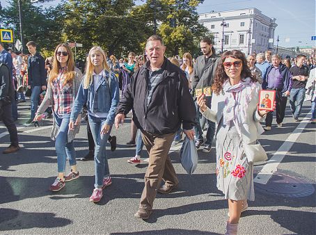– Сегодня большое торжество в нашем городе – обретение мощей покровителя нашего города, благоверного князя Александра Невского, – заявил доцент кафедры журналистики Владимир Константинович Иванов. – Посмотрите на просветленные лица, которые нас окружают. Это светлое будущее нашей страны!