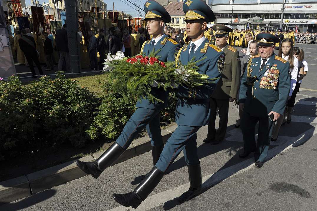 Во главе колонны по Невскому проспекту несли чудотворную Казанскую икону Божией Матери.