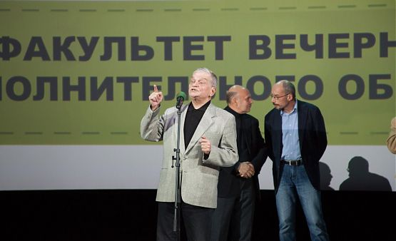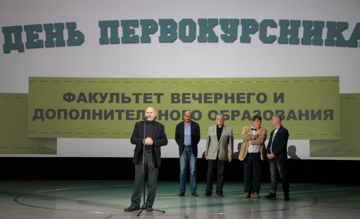 Поздравить первокурсников на сцену поднялись главные люди в их учебной жизни – руководители творческих мастерских: Сергей Михайлович Овчаров, Виктор Иванович Бутурлин, Виктор Евгеньевич Васильев, Владимир Дмитриевич Ефимов, Александр Петрович Кривонос.