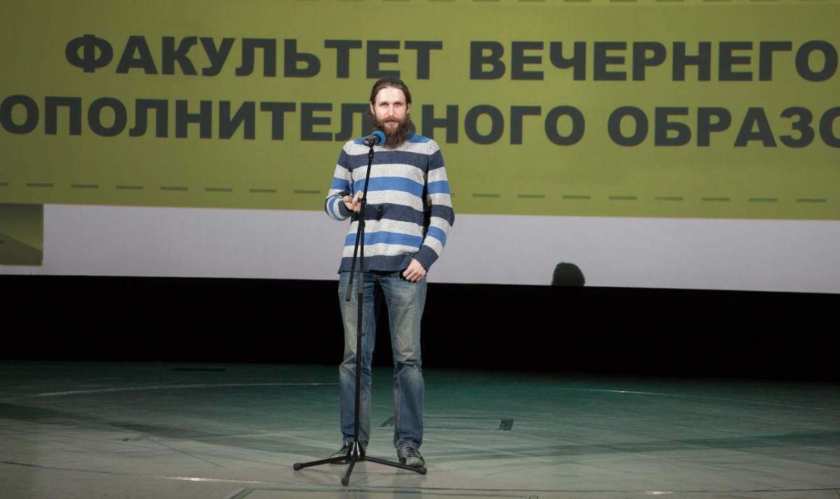 Завершая праздничную программу, выпускник факультета вечернего и дополнительного образования Николай Котяш представил зрителям свой дипломный фильм «Каждый первый», получивший большое количество фестивальных наград.