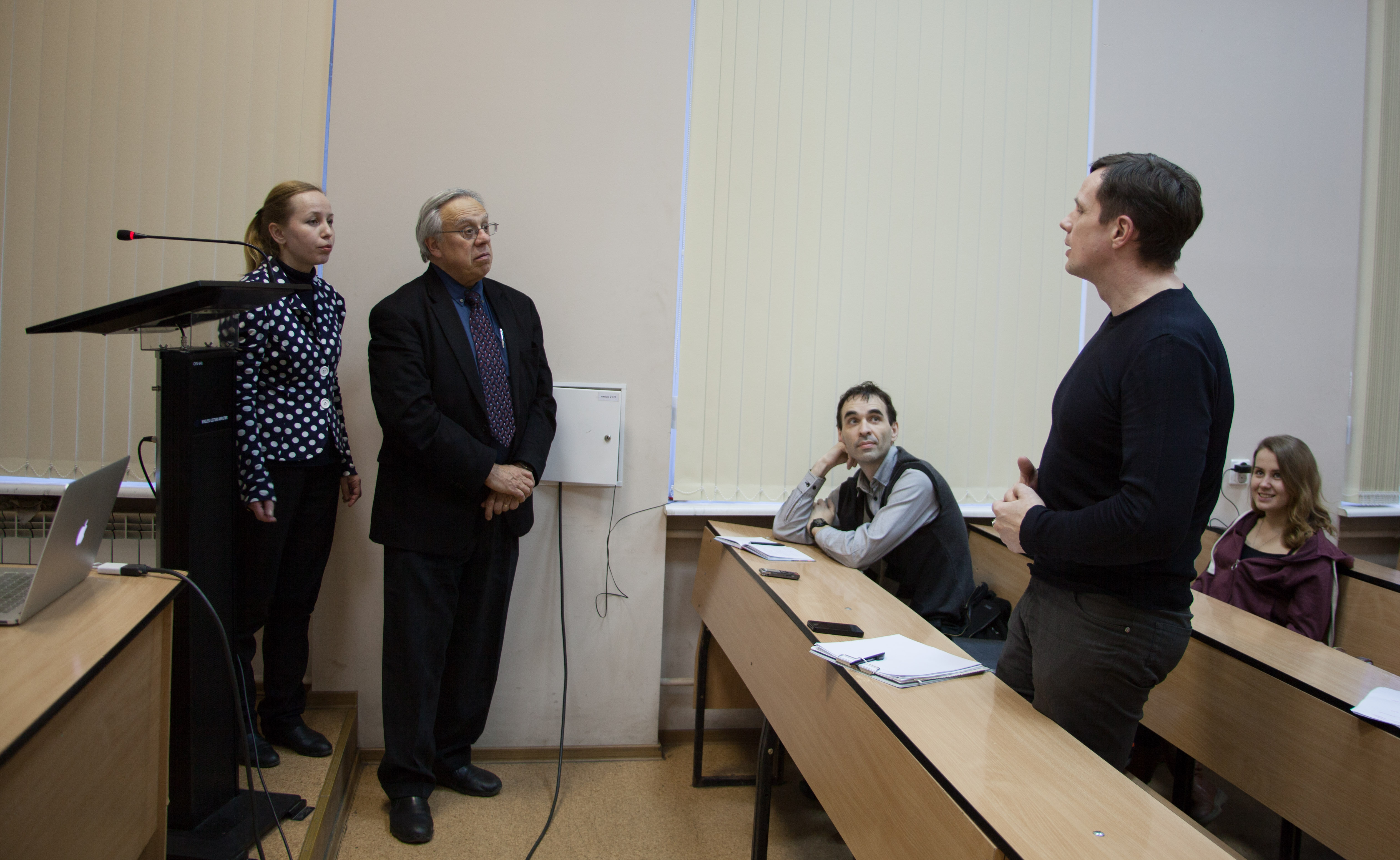 Также Денис представил аудитории свою коллегу Екатерину Шекову кандидата экономических наук кафедры управления экономическими и социальными процессами СПбГИКиТ, которая последовательно переводила речь профессора на протяжении всего семинара.