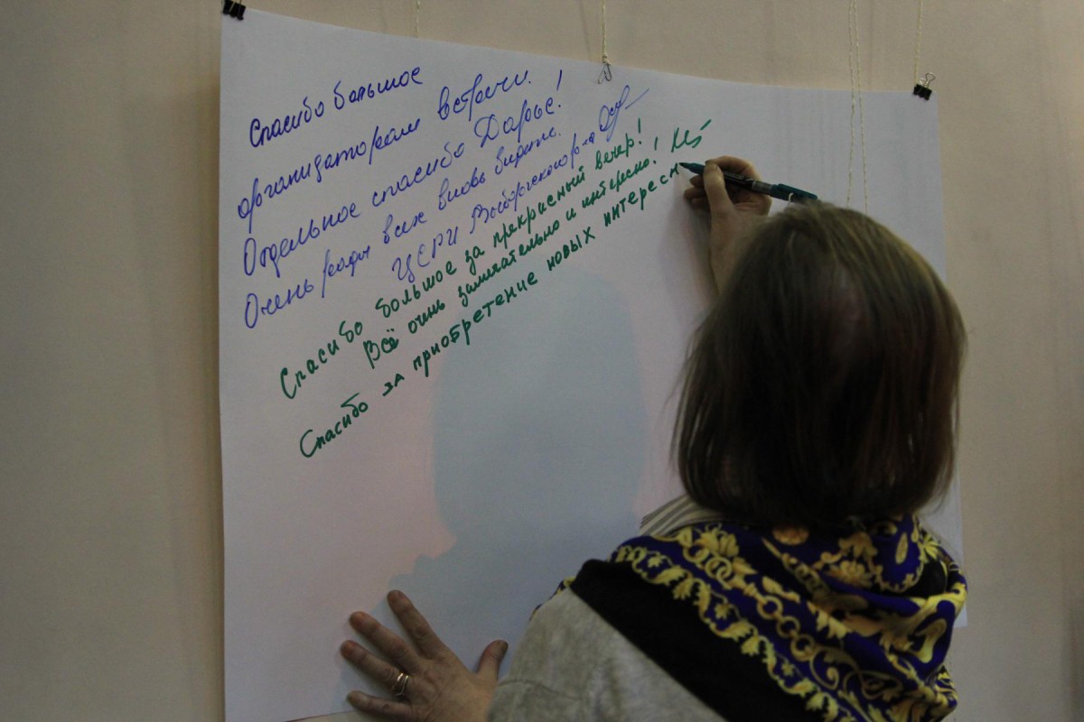 - Хотелось бы выразить благодарность Дарье Михайловне за то, что она объединила творческий народ, который, к сожалению, имеет социальные ограничения и часто не встречает поддержки общества. Подобные встречи помогают сдружиться, выразить свое «Я» и почувствовать себя необходимыми. Спасибо за возможность встречаться здесь и получать удовольствие от бесценного общения!