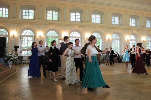 Представить себе культуру Санкт-Петербурга прошлых столетий без вальсирования пар в бальных залах, пожалуй, невозможно. Трудно поверить и в то, что старинный танцевальный этикет сохранился до сих пор, и молодые юноши и девушки кружатся по паркету, несмело отбивая ритм каблучками туфель. Балы сегодня – это как островки другой эпохи в современном океане суеты и бесконечных дел, и окунуться в атмосферу 40-ых гг. XX века посчастливилось студенткам СПбГИКиТ на Балу Победы в Смольном