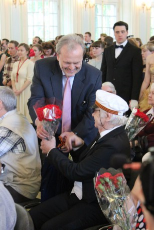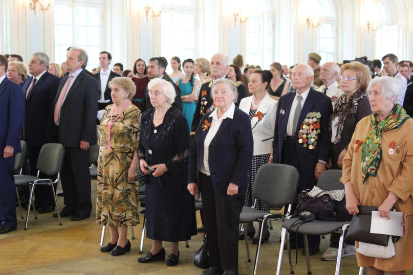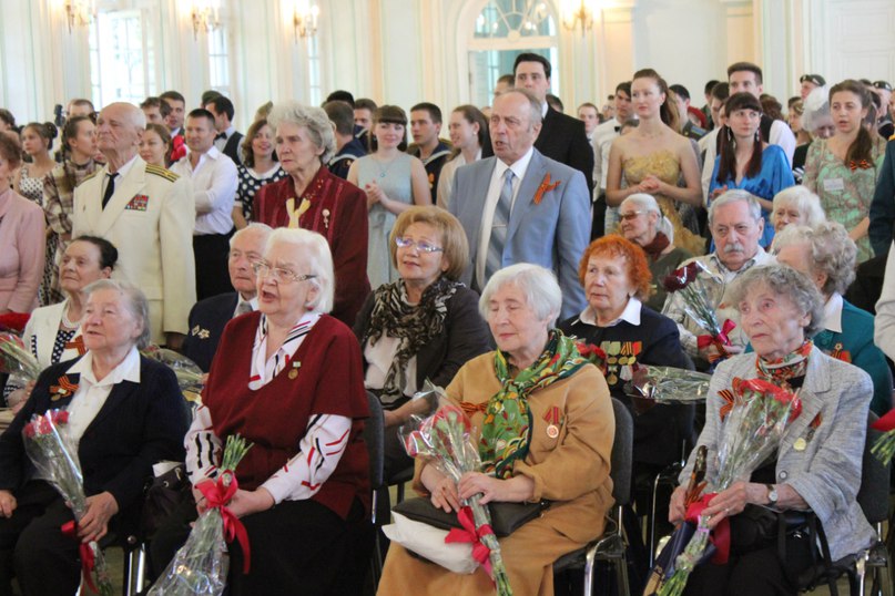 Свыше четырехсот человек собрались в одном из красивейших залов Санкт-Петербургского Государственного Университета: двери бывшего Смольного монастыря (ныне – факультета международных отношений СПбГУ) радушно распахнулись перед студентами и преподавателями 26 учебных заведений и, конечно, перед главными гостями торжества – ветеранами Великой Отечественной войны.