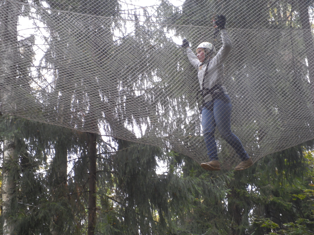 Мне всё понравилось, даже дождливая погода (люблю такую). Особенно здорово было в верёвочном парке. Накормили вкусно, конкурсы интересные. Под конец чувствовалась усталость, но оно и понятно, мероприятие же активное.