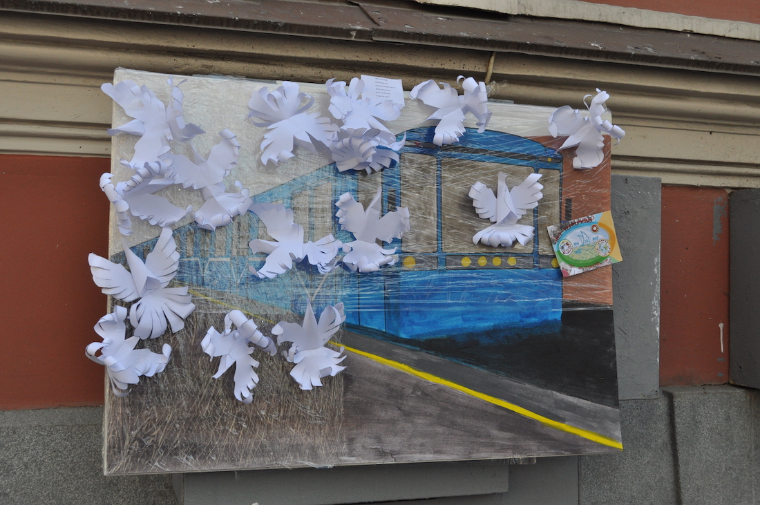 Кроме того, они изготовили два интерактивных плаката. Один призывал к созданию в нашем городе мемориала жертвам терроризма. Проголосовать за эту инициативу мог любой желающий, прикрепив к листу желтую гвоздику, изготовленную ребятами из бумаги. На другом плакате был изображен поезд петербургской подземки. На него участники акции наклеили бумажных голубей, выразив, таким образом, скорбь по погибшим 3 апреля.