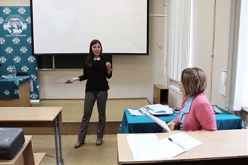 Мария пришла на встречу со студентами 3 курса факультета управления и медиакоммуникаций. Открыла встречу заместитель заведующего кафедрой УЭСП в КИТИ, доцент кафедры Т.А. Сорвина. Таисия Андреевна поприветствовала студентов 541-544 групп, а также пожелала присутствующим, чтобы время, проведенное на встрече прошло максимально плодотворно.