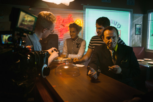 Наверное, технически и финансово это очень сложно. Так как фильм основан на рассказе американского писателя, то изначально была задумка воссоздать картинку американских 80х. Да, работа невероятно трудная. Особенно когда дело касается различных деталей: различные значки, карты, подставки, бутылки. Все это очень сложно найти на российском рынке. Но наша команда старается изо всех сил сделать интересный и качественный продукт.