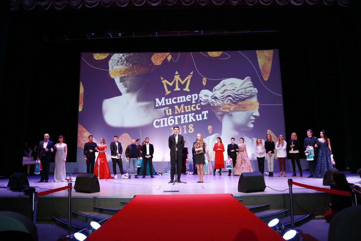 В этом году за звания Мистера и Мисс СПбГИКиТ боролись: Евгений Сидоров и Маргарита Гогинашвили, Леонид Филиппов и Екатерина Волкова, Григорий Козилов и Екатерина Зверева, Михаил Бреславский и Анна Дыркова, Никита Осиев и Юлия Кондрикова, Али Ахмедов и Александра Глазунова, Дмитрий Баталов и Елизавета Самарцева. Темой конкурса стало «Искусство» – участники и участницы раскрыли ее максимально разнообразно. Спектр номеров был настолько широк, что невозможно было выделить двух похожих выступлений. Конкурсанты не только удивляли своим вокалом и хореографией, но и устраивали перформансы, читали монологи и даже катались на льду. Также в программу вошли ролики от каждого факультета. Все выступления сопровождались видеорядом, над которым работали наши студенты.
