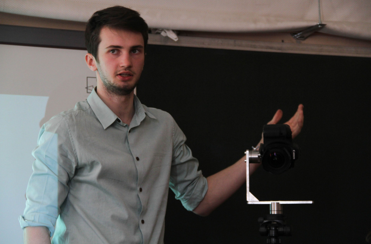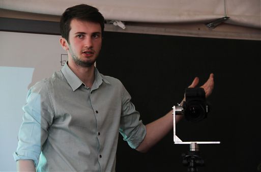 Студент 421 группы направления подготовки «Приборостроение» Андрей Шморгунов, с первой минуты заявивший о серьёзности своего материала, поделился с аудиторией созданной надёжной действующей моделью панорамной головки для фототехники. Это приспособление позволяет при помощи последовательной съёмки определенного количества кадров, в зависимости от объектива, склеить цельную картинку, которая будет отличаться полнотой изображаемых предметов. Помимо этого, Андрей поделился идеей о создании виртуального квеста по родному институту. Это было очень интересно!