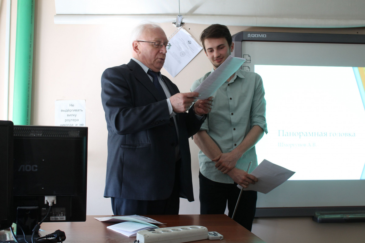 По окончании работы форума диплом за лучший доклад будет вручен студенту 421 группы Андрею Шморгунову за доклад «Разработка панорамной головки» (научный руководитель: к.т.н, доцент кафедры киновидеоаппаратуры Виктория Германовна Чафонова). Поздравляем !!!
