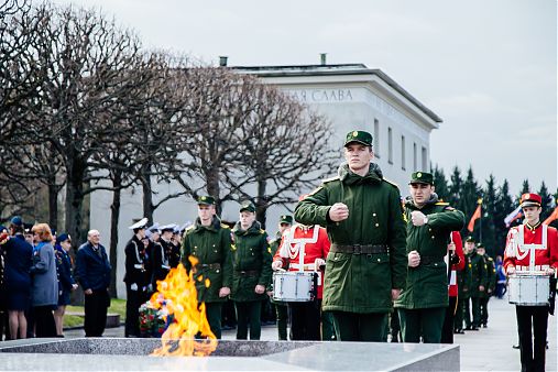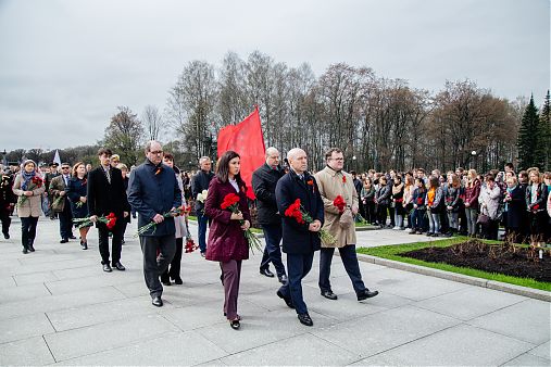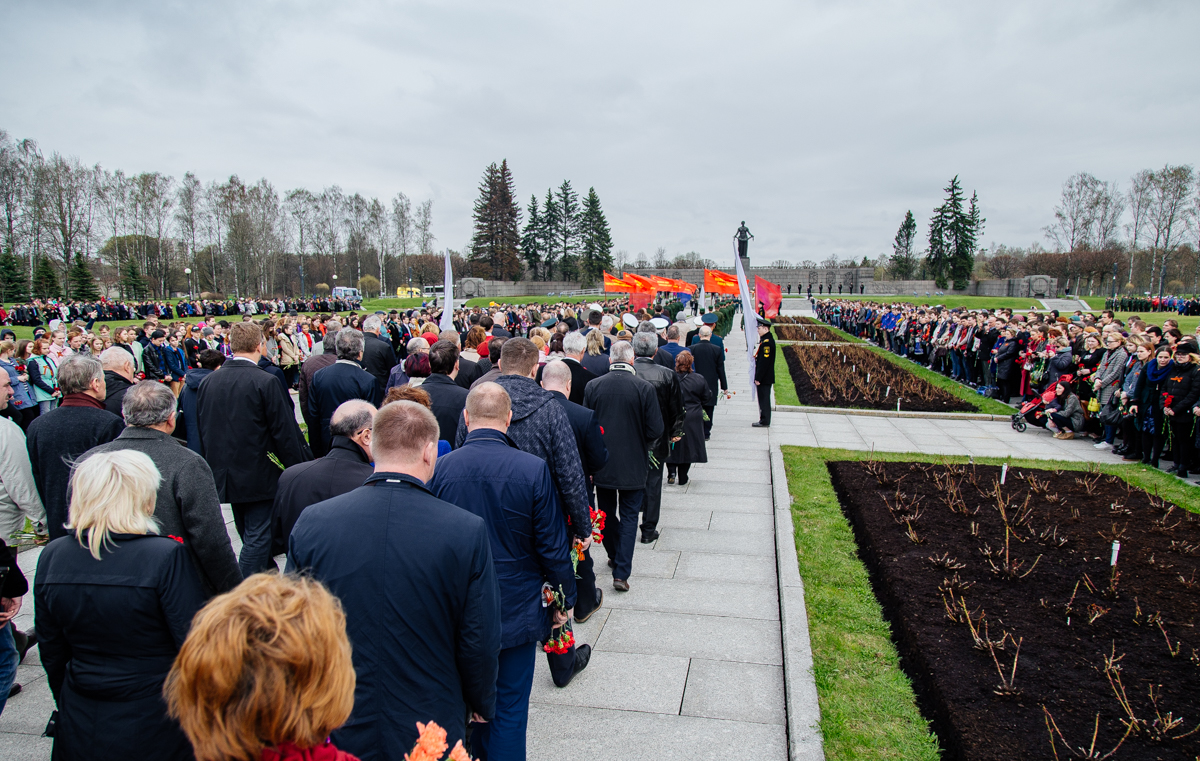 У мемориала прошла смена почетного караула, торжественная церемония зажжения главного факела с частицей Вечного огня Города-героя Ленинграда в сопровождении барабанной дроби. Участники акции почтили память павших Минутой молчания, в исполнении духового оркестра прозвучал гимн Российской Федерации. Акция завершилась торжественным возложением цветов к монументу «Матери-Родины» и братским могилам павших.