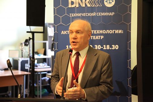 15 мая в Санкт-Петербургском государственном институте кино и телевидения прошел очередной семинар «Актуальные технологии: ТВ и театр 2018», организованный Корпорацией DNK. Одной из главных тем обсуждения стало оснащение современной техникой телевизионных студий, театральных сцен и других производственных помещений