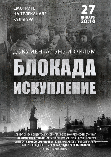 27 января в 20:10 на канале «Культура» состоится премьера фильма «Блокада. Искупление». В основу документальной картины вошли кинохроники того времени, интервью с научными деятелями и современные съемки военных мемориалов