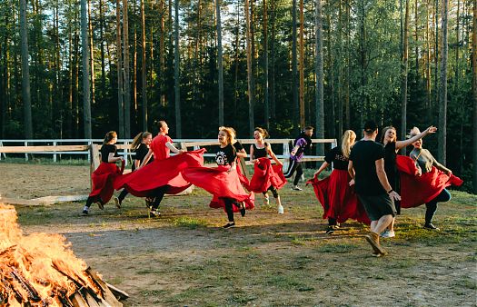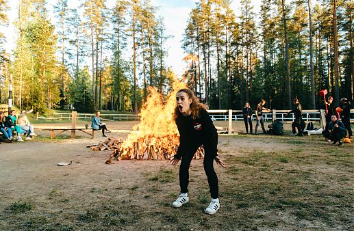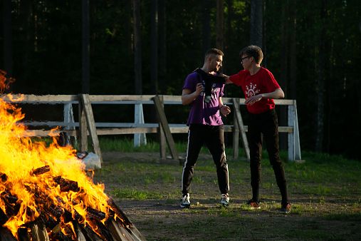 После подведения итогов, ребята отправились на ужин. Самое время подкрепиться и подготовиться к самой трогательной части программы, когда студенты собираются вокруг костра, общаются, смеются, вспоминают интересные истории уходящего учебного года, наслаждаются творческими номерами, забавными постановками и сценками. Каждый факультет выбрал отдельное театральное направление и по его канонам выстаивал свое выступление.