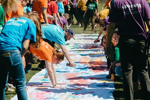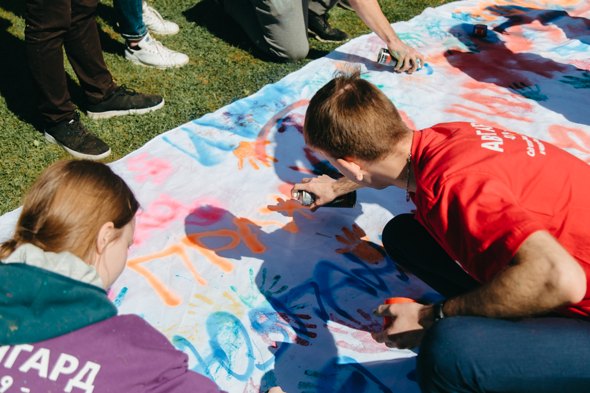 На следующий день ребята устроили флешмоб с разноцветными шарами, а также оставили «послание» на большом холсте.