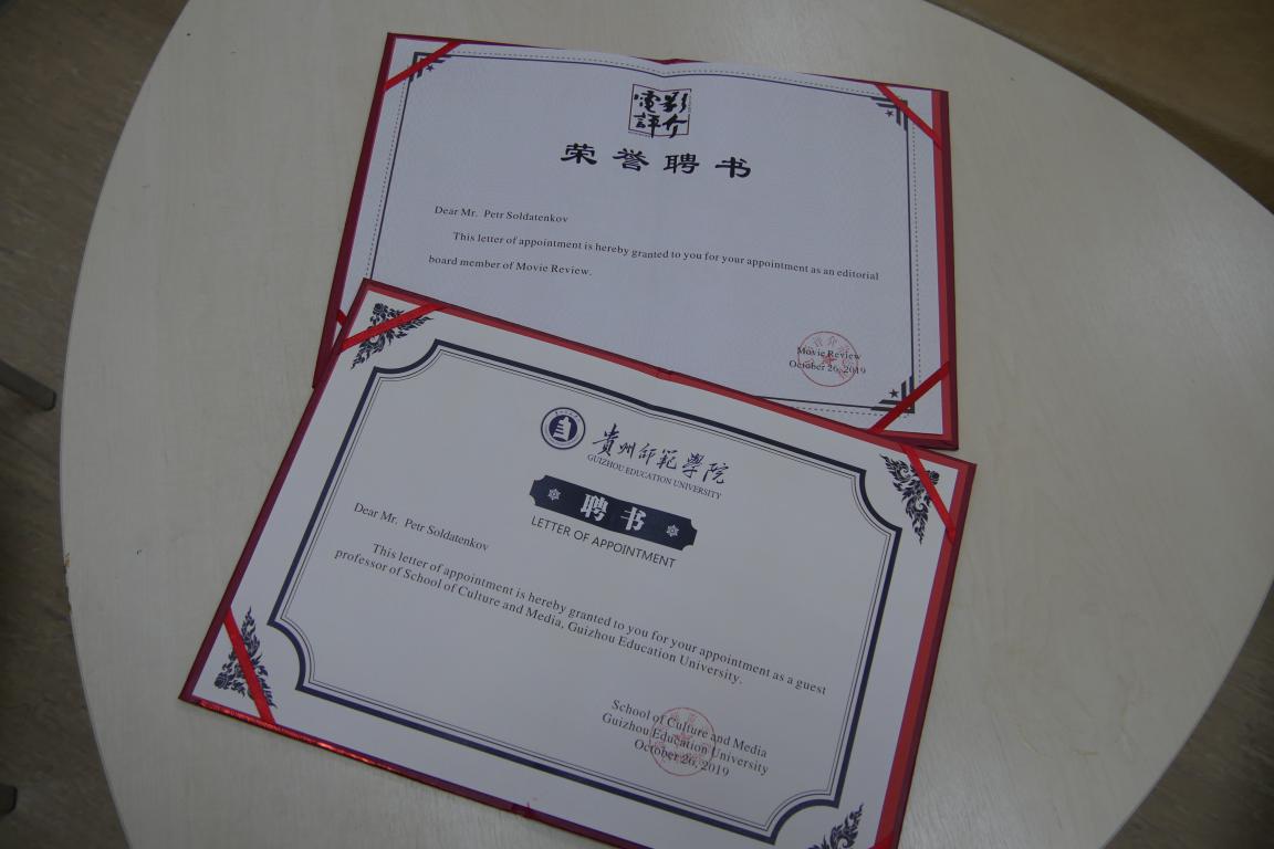Кинофорум в Гуйджоуском педагогическом университете, который состоялся в конце октября 2019 года, проходил в рамках глобального китайского проекта «Один пояс, один путь». Доцент кафедры телевидения СПбГИКиТ, режиссер Петр Солдатенков получил сертификат участника форума за доклад «Наследие Андрея Тарковского» о так называемой «русской кинотеории» режиссёра