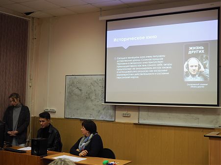 Приглашение участвовать в творческой конференции, посвященной немецкому киноискусству разных жанров и направлений, нашло живой отклик среди студентов нашего вуза, которые подготовили глубокие и интересные доклады по 69-му кинофестивалю в Берлине, кинематографическому образованию в Германии, немецкому кино эпохи экспрессионизма, обзору немецкоязычной мультипликации с 1909 по 2019 годы, творчеству немецких режиссеров Райнера Фассбиндера и Каролины Линк. Все эти, и другие выступления конференции, получились яркими и запоминающимися - каждое из них представляло собой, по сути, полноценный портрет в галерее кинообразов Германии XX-XXI веков.