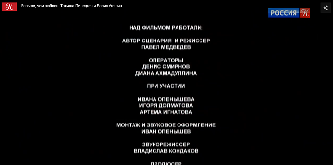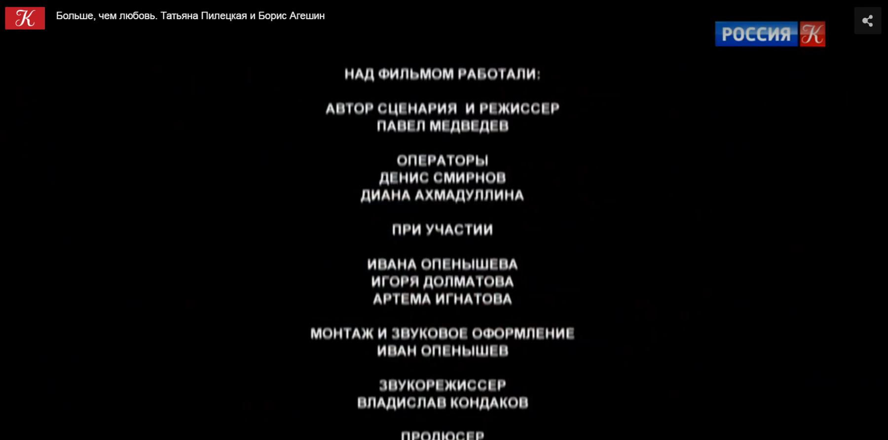22.09.2019 года на телеканале "Культура" состоялась премьера документального фильма "Разные судьбы - Одна судьба" из серии "Больше, чем любовь" . Автором сценария и режиссером фильма стал доцент кафедры режиссуры Павел Михайлович Медведев.