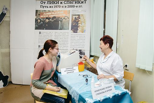 Яркая символика и масштабная информационная поддержка Центра послужили хорошим стимулом для ребят, которые обычно не задумываются о том, чтобы сделать тест на ВИЧ. Пройти экспресс-тестировании на ВИЧ-инфекцию можно было во внутреннем дворе Института. Здесь работал мобильный пункт Благотворительного фонда «Диакония», в котором можно было анонимно пройти экспресс-тест на ВИЧ, узнать в течении 5 минут результат и задать любые интересующие вопросы специалистам пункта. Несмотря на холодную погоду, к мобильной лаборатории образовалась очередь из желающих. Как рассказал специалист команды «Диакония», в акции по тестированию было зарегистрировано рекордное количество участников – 203 человека узнали свой ВИЧ-статус.