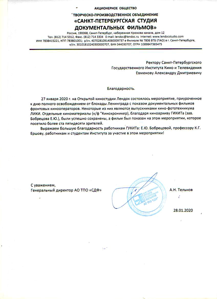 От лица СПбГИКиТ благодарим студию Лендок за огромный вклад в сохранение истории нашего города, а также за возможность свободно увидеть столь ценные документальные кадры и почтить память о героях.