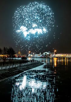 Основная программа мероприятий завершилась реконструкцией салютного залпа, того самого, который 76 лет назад озарил небо над освобожденным Ленинградом. Специальная технология и зенитные орудия того времени позволили создать фейерверк в виде тонких длинных лучей.