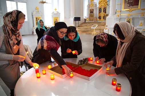 Студенты СПбГИКиТ и других вузов Петербурга, а также курсанты военных училищ поприсутствовали на панихиде по погибшим во время блокады. Богослужение прошло в Смольном соборе, который является храмом всех учащихся. Службу провел директор Ассоциации «Покров» иерей Виктор Матяшов. После панихиды, 900 ударов колокола прозвенели над мирным небом Петербурга. Знаменательная цифра была также выложена свечами перед домом Божьим.