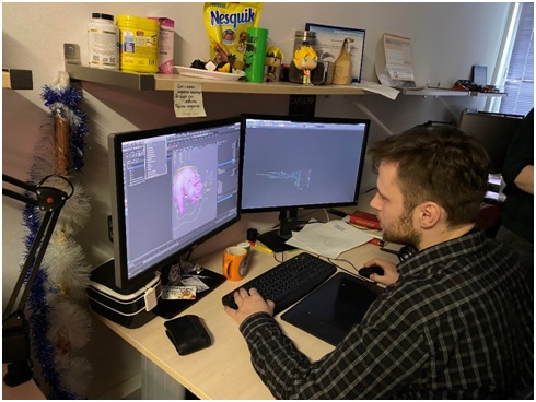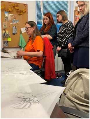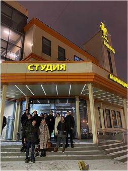Марина Михайловна провела третьекурсников по двум этажам, на которых происходит волшебство создания анимационных фильмов. Она подробно рассказала о технологиях работы с анимацией, сколько на создание одного героя тратится времени, и как его заставляют двигаться в кадре, как персонаж живет и проявляет эмоции, благодаря профессионалам студии. Марина открыла секрет, что оказывается мультфильмы озвучиваются два раза. Первый раз – два диктора без изображения наговаривают текст за героев, после чего под их текст создаются движения рта, и после завершенного анимационного проекта происходит полное переозвучание уже индивидуально подобранными для каждого персонажа голосами.