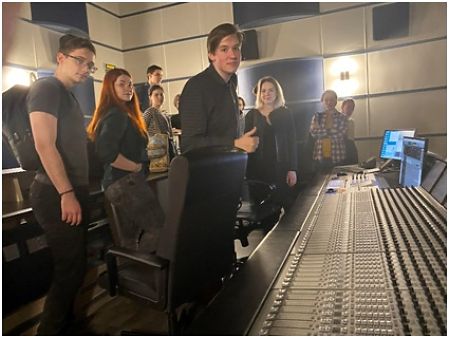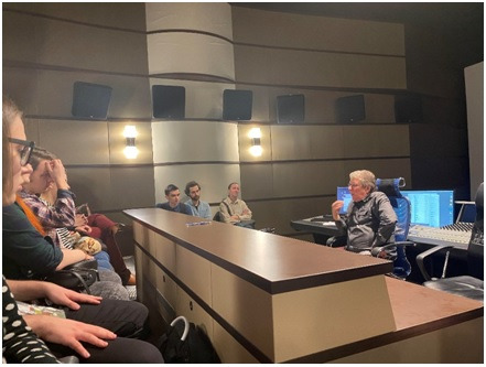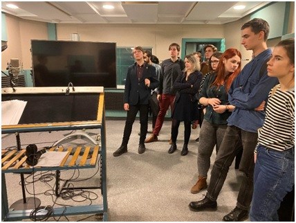 Владимир Николаевич продемонстрировал студентам две студии перезаписи, Dolby и Dolby-Atmos, объяснил в чем их разница. Познакомил ребят со знаменитым Петербургским артистом шумового оформления Сергеем Прокофьевым, ребята увидели, как выглядит профессиональное шумовое ателье. Также посетили студию речевого озвучания, которая позволяет проводить запись сразу нескольких актеров одновременно. Это удобно для закадрового озвучания зарубежных фильмов. Студенты увидели, как выглядят профессиональные монтажные аппаратные на студии «Мельница».