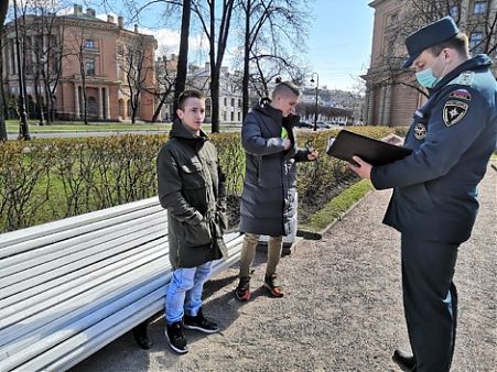 Сотрудники МЧС совместно с сотрудниками МВД и Росгвардии осуществляют контроль выполнения вышеуказанных требований в ходе проведения плановых (рейдовых) осмотров, обследований территорий парков, садов и скверов, запрещенных к посещению в соответствии с перечнем, утверждённым постановлением Правительства Санкт-Петербурга.