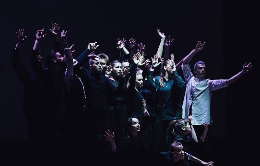 Нужно отметить, что во всех трех спектаклях заняты почти все студенты курсов. Над всеми постановками пластических и хореографических сцен ребята работали под руководством замечательных педагогов кафедры актерского мастерства Максима Пахомова и Марии Кораблевой.