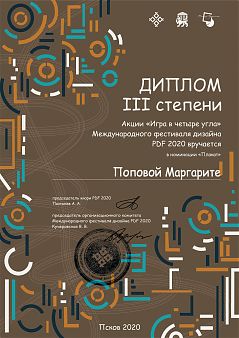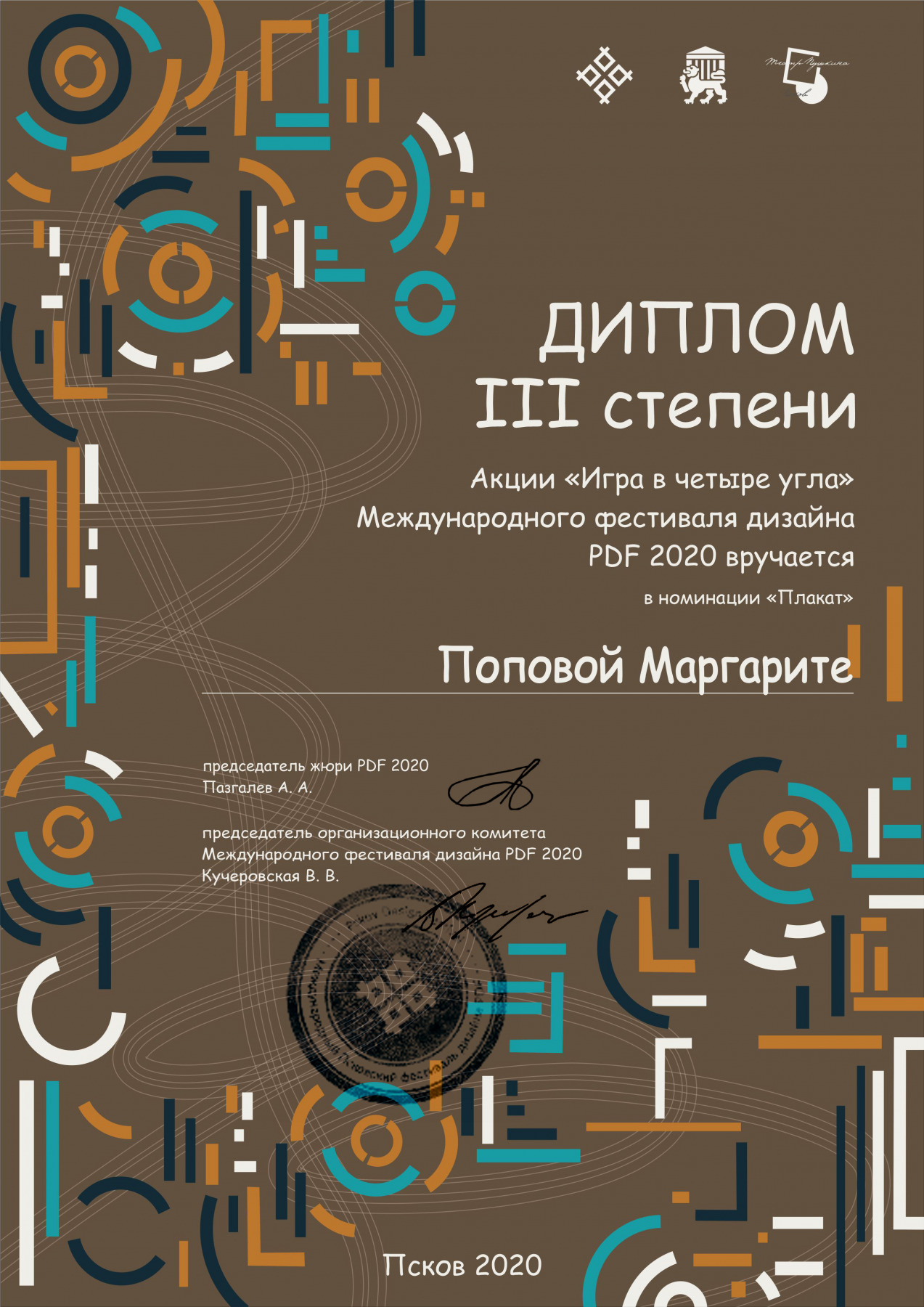 Маргарита Попова стала дипломантом Псковского фестиваля дизайна "Игра в 4 угла"